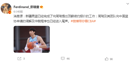 周琦团队发起的争议调解,真能让周琦如愿以偿离开新疆男篮吗?换句话说新疆男篮不会让周琦轻易离开,他们不会放弃周琦的,周琦是当下中国男篮的门面,说白了就是球队实力与门票的保证,所以面对争议调解进入尾声之际,新疆男篮给出了一个重锤:完成了向周琦提出顶薪续约报价的工作。