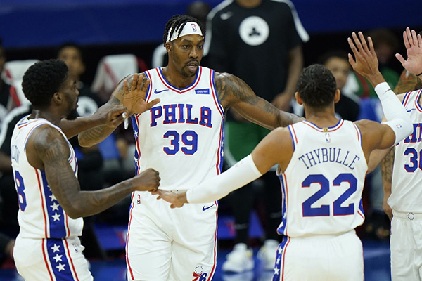 76人:西蒙斯、小库里、丹尼-格林、哈里斯、恩比德