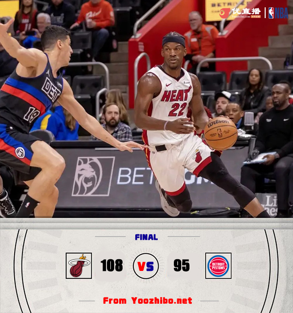 24直播网3月16日讯 NBA常规赛,热火客场挑战活塞。热火4连败排东部第八,活塞东部倒数第二。一开场,热火率先发力打出9-2的开局,活塞内外开花迅速追赶并完成反超,此后双方陷入缠斗,比分交替领先,阿德巴约高效输出,杜伦毫不示弱,热火一波9-0占据主动,活塞不断冲击篮筐顽强咬住,半场战罢热火56-54领先2分。下半场,活塞命中率骤降,热火内外开花趁势获得两位数优势,末节热火持续发力一举将分差拉开到20分,活塞大势已去无力回天。最终,热火108-95击败活塞,结束了自己的4连败。