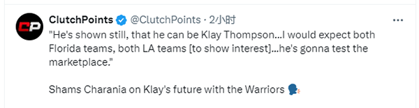 谈到克莱的未来,名记Shams表示:勇士给克莱提供了2年4800万美元的续约合同,他们才刚刚给了追梦4年1亿的合同。勇士会专注于与克莱续约,随着赛季的进行,这会让克莱在自由市场的行情变差,他的状态起起伏伏。但昨天的比赛他打得很棒,他证明了自己仍然是克莱-汤普森,他仍然能帮助球队——我认为你们都很认同这个观点——就像在球队角色、出场时间方面,加上昨天他也替补出场了。作为四次总冠军、最佳阵容球员,克莱替补出战,这是勇士做出的调整。”