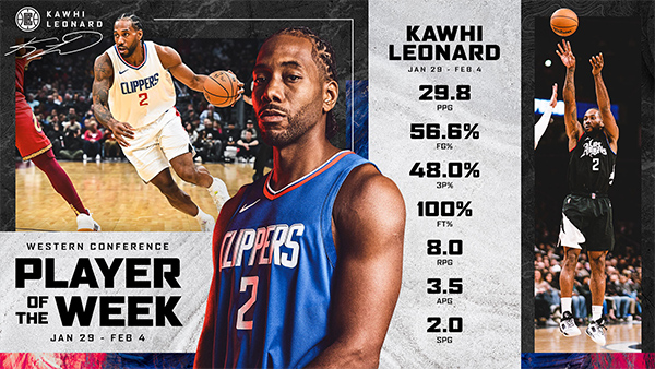 来源:24直播网02-06 14:2724直播网2月06日讯 ,NBA官方公布最新一期东西部周最佳球员,特雷-杨和科怀-莱昂纳德当选,两人都是赛季首次当选周最佳;小卡场均29.8分且打出200俱乐部的表现,力压库里等6大球星获得西部周最佳,快船官方祝贺小卡,两大名嘴力挺小卡争夺常规赛MVP。