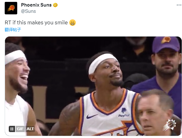 第二节,太阳被奇才打出11-3攻势后,比尔连得6分稳住局面,抢断反击双手暴扣打停比赛,比尔的表情反应十分抢镜,布克为他咧嘴大笑庆祝;比尔继续得分,杜兰特输送火力,布克4犯无奈下场,杜布重新带队,比尔中投,杜兰特送出大帽,太阳半场79-58领先奇才21分。