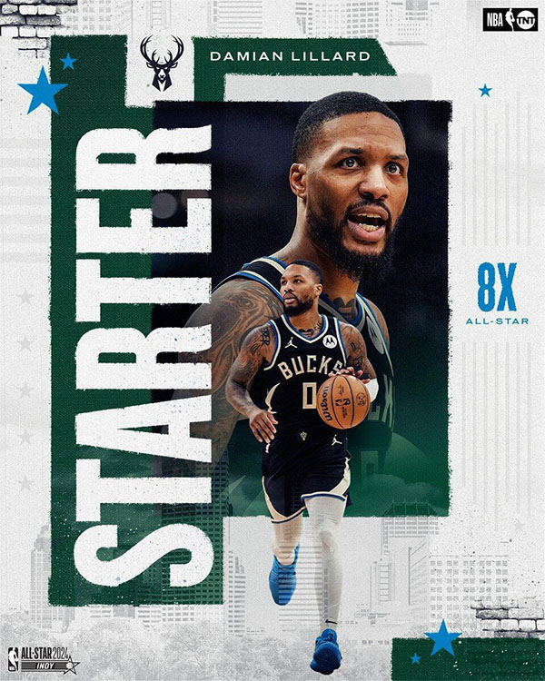 字母哥成为东部全明星首发前场,这是字母哥生涯第8次入选全明星,也是连续第8年入选。赛季至今,字母哥场均31.3分11.7篮板6.2助攻。