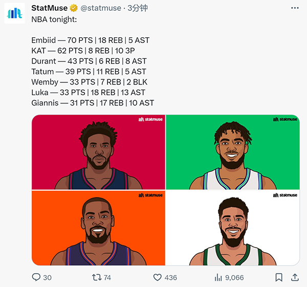 NBA数据爆发日:恩比德70分杜兰特准绝杀 詹姆斯连续发声看爽了