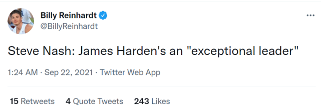作为主教练,纳什也谈论了新赛季的篮网阵容。关于季后赛表现不佳的乔-哈里斯,纳什说:“我不担心乔-哈里斯,我认为他在上赛季的季后赛中得到了应有的成长。”关于年轻的克拉克斯顿,纳什说:“他是我们的重要组成部分,是独一无二的,是队内最好的防守者之一,可以防守多个位置。”关于哈登,纳什认为他是一个杰出的领袖。