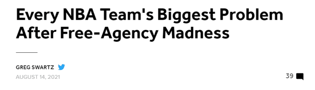 美媒解析30队目前最大问题:篮网侧翼有漏洞!湖人缺少年轻人