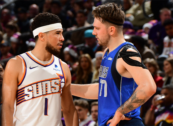 年终大战,东契奇狂砍50分15助攻带队击败太阳——当年太阳用状元签选走艾顿从而错过东契奇,东契奇的NBA生涯首分就是对阵太阳拿到的,东契奇10000分里程碑也对打太阳,2021-22赛季季后赛,东契奇带队4-3淘汰太阳(当时太阳是常规赛战绩最好的球队)
