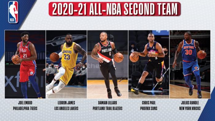 最佳二阵:詹姆斯、恩比德、兰德尔、保罗和利拉德