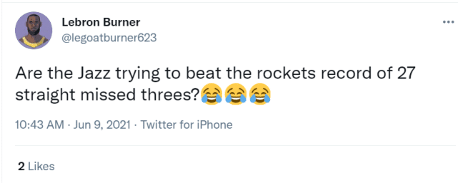 连续20次出手不中,也在社媒上引起热议。不少球迷调侃,你们是要打破火箭的纪录吗?众所皆知,火箭曾经在一场比赛中连续27次三分出手不中。相比之下,爵士的命中率也算比较夸张了。