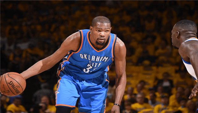 而排在第二位的就是健康状态下的杜兰特。注意我的前缀,是健康状态下的杜兰特。为什么这么说呢?在受到跟腱伤病之后,杜兰特的耐久性已经大不如前,他随时都有可能倒下。所以相比较而言,大伤之后的杜兰特的威胁性就大打折扣。不过,看过之前几个赛季杜兰特的朋友应该清楚,没有伤病困扰的杜兰特究竟有多么恐怖!他的得分能力堪称历史顶级,截止到现在,你都找不出一个可以完全限制杜兰特得分的防守球员,就算是以防守能力著称的伦纳德也做不到。杜兰特的错位优势太过明显,以至于在其他球员面前得分简单得就像切瓜砍菜一般。有杜兰特坐镇,球队从来不用担心陷入得分荒。
