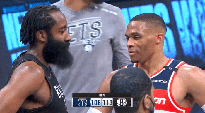 暖心!哈登拥抱韦少畅聊,欧文比尔互换球衣+韦少脱衣露腹肌显身材