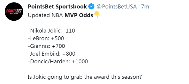最新MVP赔率出炉!詹姆斯受伤跌至第二,约基奇升至第一哈登第五