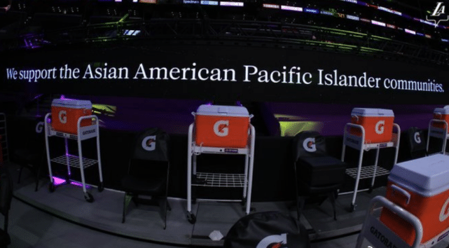 湖人官方声援亚裔群体!斯台普斯球馆打出标语:停止仇视亚裔