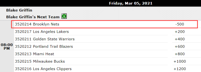 格里芬潜在下家的赔率也第一时间更新,篮网(-500)强势领跑,湖人(+200)排名第二,勇士(+400)、开拓者(+600)、热火(+800)、雄鹿(+1000)和快船(+1200)分列三至七位。从目前的情况来看,篮网得到格里芬的希望最大,湖人快船等六支球队恐怕只能陪跑了。