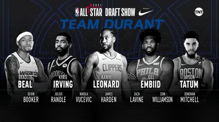 首发阵容:欧文、恩比德、小卡、比尔和塔图姆(杜兰特因伤缺席)