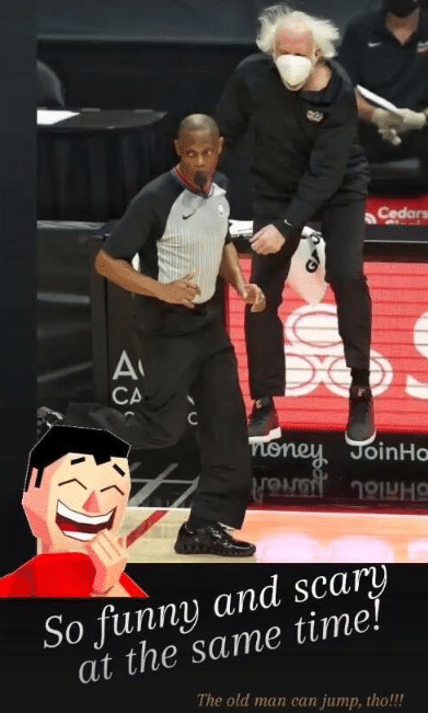 来源:24直播网01-10 14:0724直播网1月10日讯 近日波波维奇吸引了不少人的关注,这位72岁的老帅已经达成了执教NBA场次1900场里程碑时刻,位居历史第9,虽然已经72岁高龄了,但波波维奇在场边依旧激情四射,本赛季还有因为质疑判罚被驱逐出场的时候。波波维奇在场边激动的画面也在网络上走红,主要是白发的波波维奇跳起来朝着裁判抱怨,甚至被自己的弟子吉诺比利恶搞调侃。