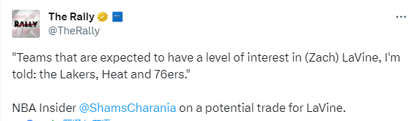 shams进一步报道:在座各位肯定都已知晓公牛对于交易拉文的态度已越来越开放,据我所知,预计湖人、热火、76人对公牛球星拉文有一定兴趣。此外,德罗赞与公牛的续约谈判也陷入僵局,他肯定想看看球队的发展方向再做决定。现在的情况是,拉文、德罗赞其一,或者两者一起,迟早会离开公牛。