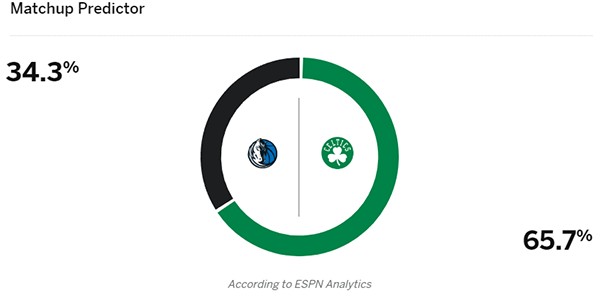 来源:24直播网06-04 11:3324直播网讯 北京时间6月4日,根据赛程,独行侠和凯尔特人将在3天后打响总决赛,ESPN预测总决赛G1胜率,凯尔特人65.7%,独行侠34.3%;换言之,美媒看好凯尔特人取得总决赛开门红。