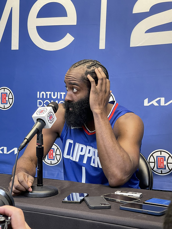 哈登还录视频向快船球迷问好,直言很兴奋能够回到家乡,等不及去拿到它了,让我们冲啊。