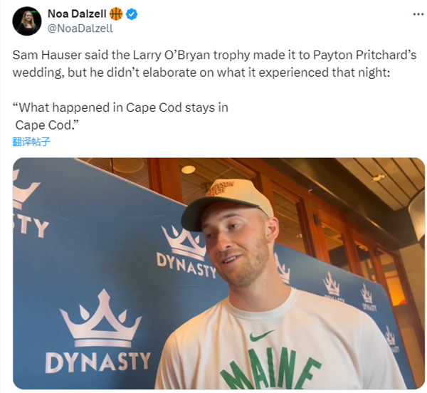 谈及队友普里查德的婚礼,豪瑟表示:我去参加了佩顿-普里查德的婚礼,他把总冠军奖杯带到了婚礼现场。至于那晚发生了什么,我不想细说;我们就是去庆祝佩顿-普里查德完婚。他找到了自己的一生所爱,我们都为他感到无比的高兴。