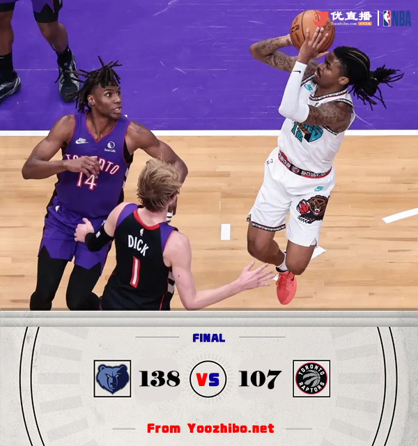NBA常规赛今日继续开打,猛龙今日坐镇主场迎战灰熊,灰熊过去10场比赛拿下9场状态火热,猛龙方面在取得一波5连胜后,近期3场比赛输掉2场。首节对决猛龙展现近期良好状态,他们在和灰熊拉锯半节时间后依靠一波12-2的攻势抢占先机;灰熊这边遭遇5分钟仅得2分的得分荒,猛龙在次节开局连续飙进三分的情况下一度拉开10分优势;不过好在近期状态大热的小杰克逊站出来连连拿分迅速稳住局面,这一节双方均砍下30+的单节得分,猛龙顶住压力带着6分领先进入下半场。休息归来场面两极分化,上半场表现出色的猛龙这一节哑火,灰熊则打出联盟最强进攻球队的风采,他们先是一波12-0的攻势送上开胃小菜,随后又送上19-5的攻势一举拉开比分,第三节爆砍43分将优势扩大至20分以上,末节灰熊继续占优早早锁定胜局。最终,灰熊客场轻取猛龙,最近11场比赛拿下10场坐稳西部第二。