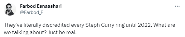 富保罗因争议言论冲上推特热搜榜,对于富保罗的言论,快船记者Farbod Esnaashari为库里抱不平,发推写道:他们真的抹黑了库里在2022年之前夺得的每一个总冠军戒指,我们还能说什么?真实一点。