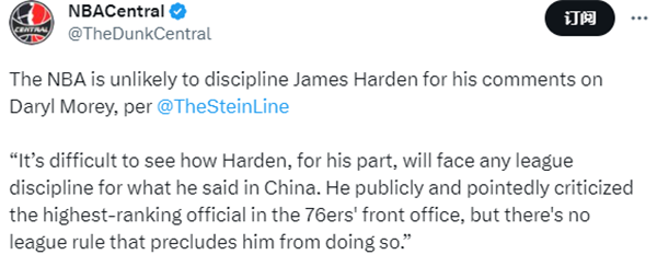 哈登会因炮轰莫雷被联盟处罚吗?据名记Stein报道,哈登不太可能因他在中国的言论而面临任何联盟纪律处分。虽然他公开炮轰76人高管,但联盟没有规则阻止他这样做。