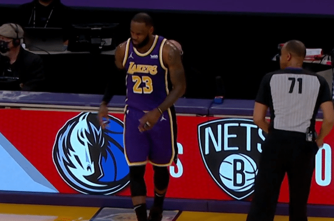 亨特踩到兰兹博格的脚致其摔倒 前者被裁判吹违体