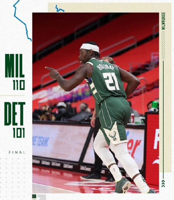 雄鹿105-100险胜快船 字母哥36+14+5 莱昂纳德25+9