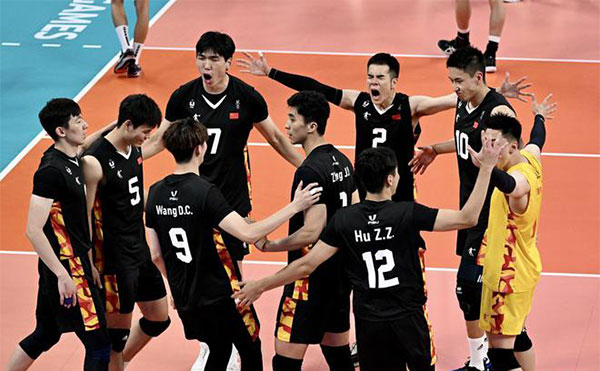 中国男排:主攻张景胤、王滨,副攻李咏臻、彭世坤,接应胡朕卓,二传王鹤斌,自由人杨一鸣