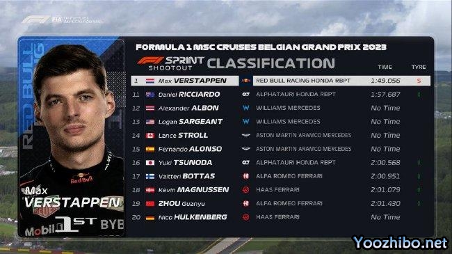 - 【录像】[腾讯] 2023F1比利时大奖赛 冲刺排位赛 SQ22023-07-29 21:14:00