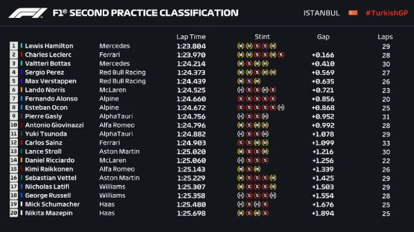 2021F1土耳其大奖赛二练成绩:
