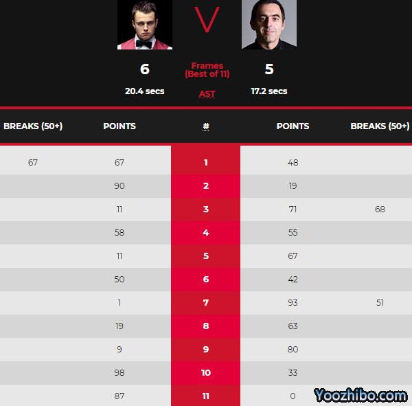 最终奥沙利文以5-6不敌乌森巴赫,止步本届世锦赛第二轮。
