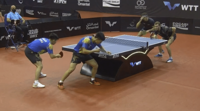第一局的比赛开始,两对组合打得十分胶着,比分一度来到了5:5平,王楚钦/梁靖崑连续得分,梁靖崑扣球得手,11:7,王楚钦/梁靖崑拿下第一局。第二局的比赛曹巍/徐瑛彬轰出了7:2的开局,11:5,曹巍/徐瑛彬扳回一局,大比分变成了1:1平。