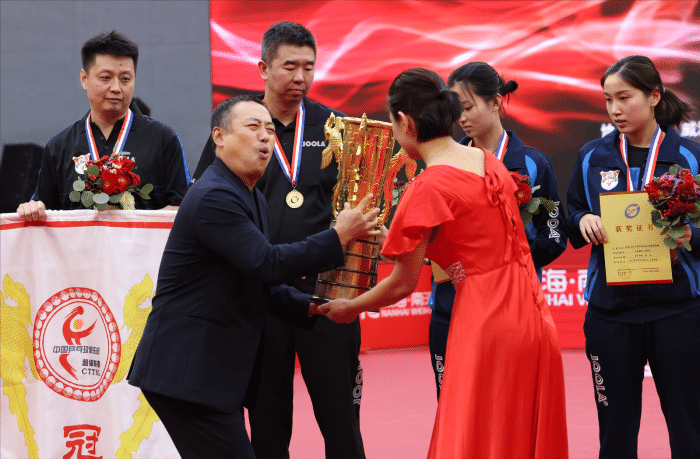 刘国梁搞笑举奖杯,王楠合影让C位,1V3失败,孙颖莎仍是大赢家