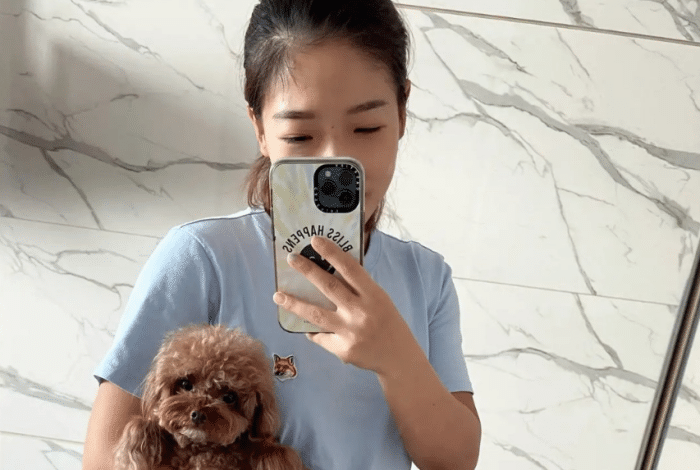 获赠豪宅后,刘诗雯罕见发生活照:抱小狗自拍,心情大好素颜出镜