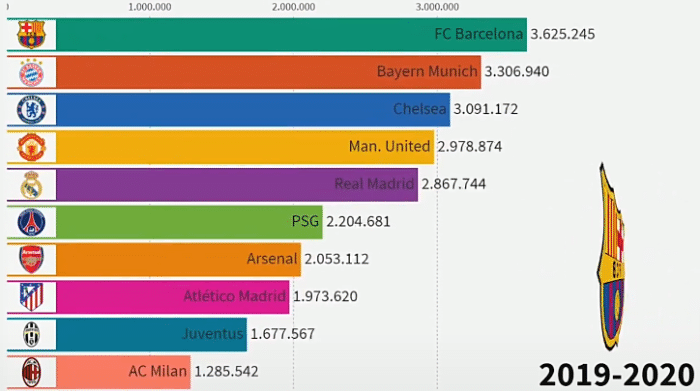 这样的数据确实太恐怖了,要知道的是一周的薪水就价值20万件球衣,当然这里说的是曼联巴萨等顶级俱乐部的球衣。可以对比下,上个赛季,世界足坛球衣销量最高的10大俱乐部,其中巴萨以362万5245件排名第一,第二是拜仁的330万件。也就是说,世界上卖出球衣最多的俱乐部巴萨,一整个赛季的球衣销售才顶哈兰德18周的薪水。