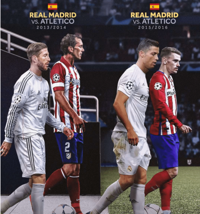 后面几次就非常接近了,13-14赛季和15-16赛季,皇马和马竞都在欧冠决赛赛场上相遇,而皇马始终都上演着马竞克星的角色,两次绝杀马竞,两次拿到欧冠冠军。老实说,马竞真的有点可惜,特别是13-14赛季,他们距离夺冠只有几分钟了,最后被绝平,然后加时输球。最近一次是18-19赛季,利物浦和热刺的欧冠决赛,这个非常近了,就不多说了,最终利物浦夺冠。