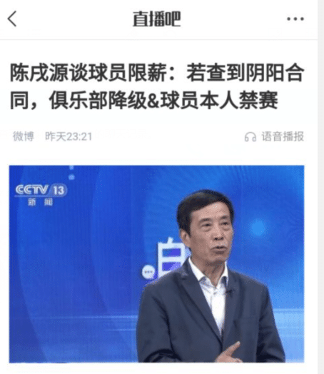 老陈强调:中国足协会严格审查有关限薪方面的问题,一旦查出球队做假账搞阴阳合同,那么一经发现就要严肃处理:球队直接降级,而涉及的球员要遭受禁赛!